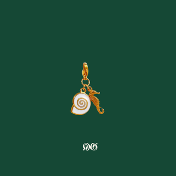 Seahorse & Shell Charm, crafted in 18K gold stainless steel with waterproof, tarnish-resistant shine. Delicate yet full of character, this ocean-inspired duo adds a whimsical, beachy touch to your jewelry