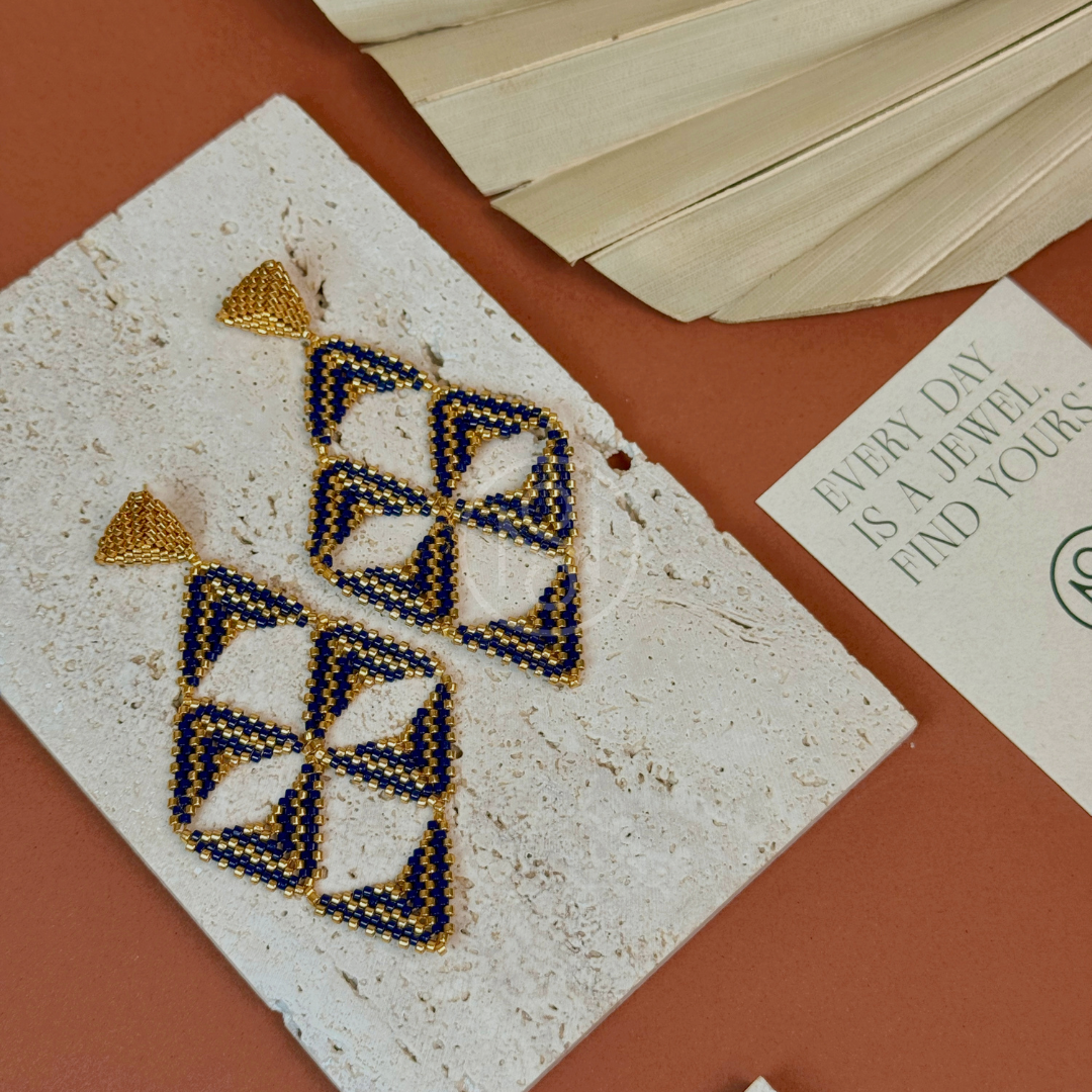 Elegant and bold, these handmade Miyuki earrings blend colors and shapes into a unique long design that elevates any look.
